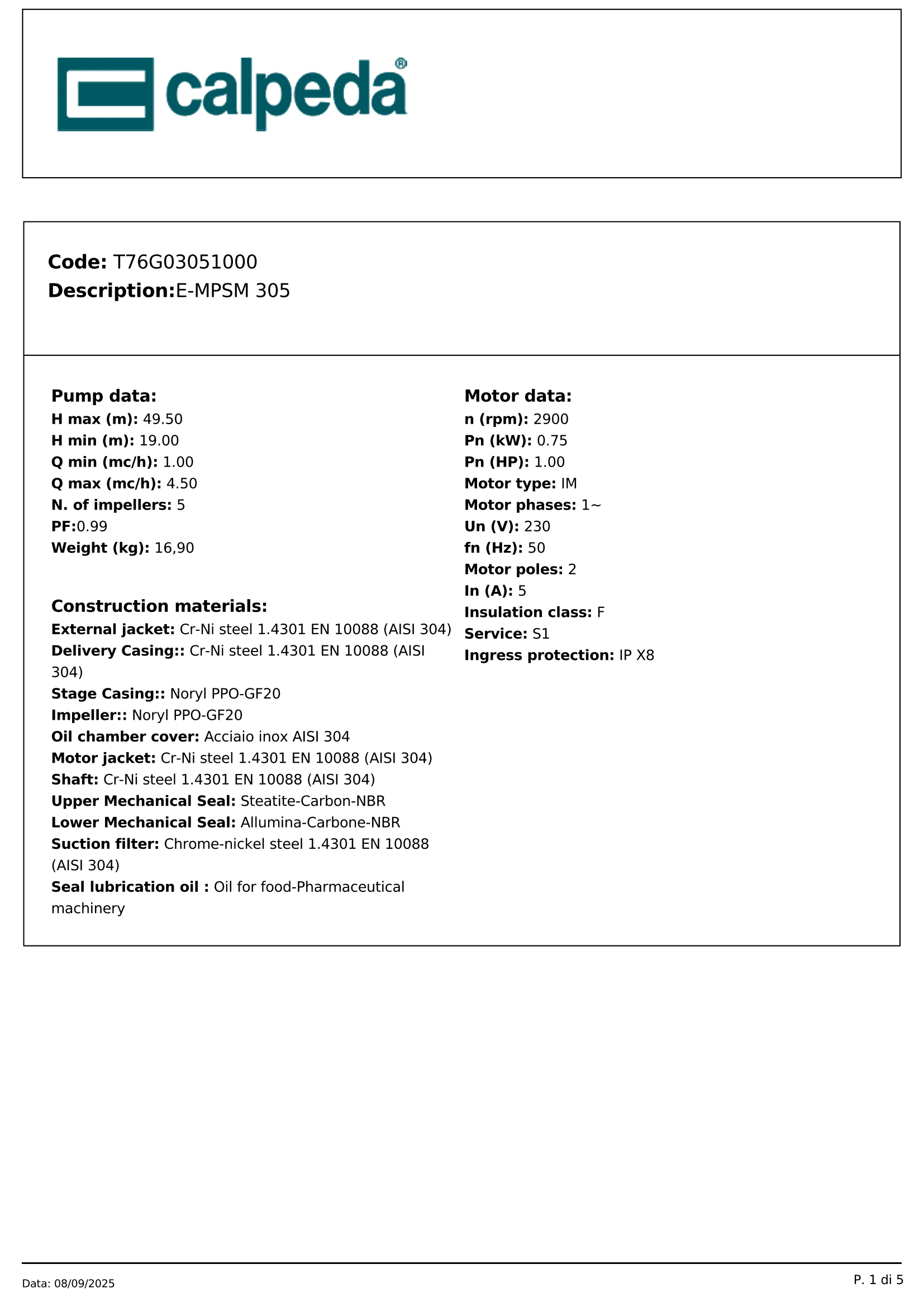 Productie: Calpeda, Italia